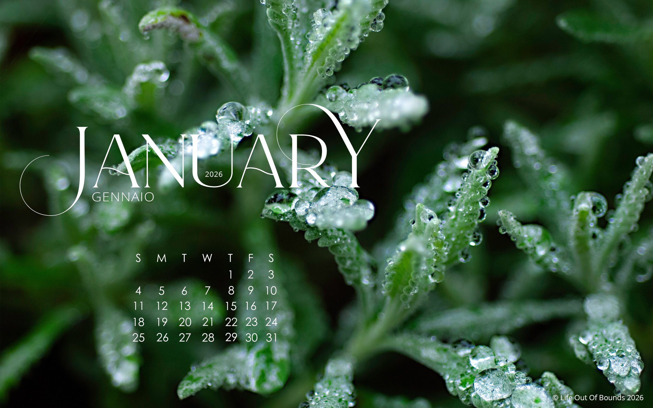 Here is the new Calendar Wallpaper for January, featuring on of my macro images from the garden after a rainy winter morning here in Italy.